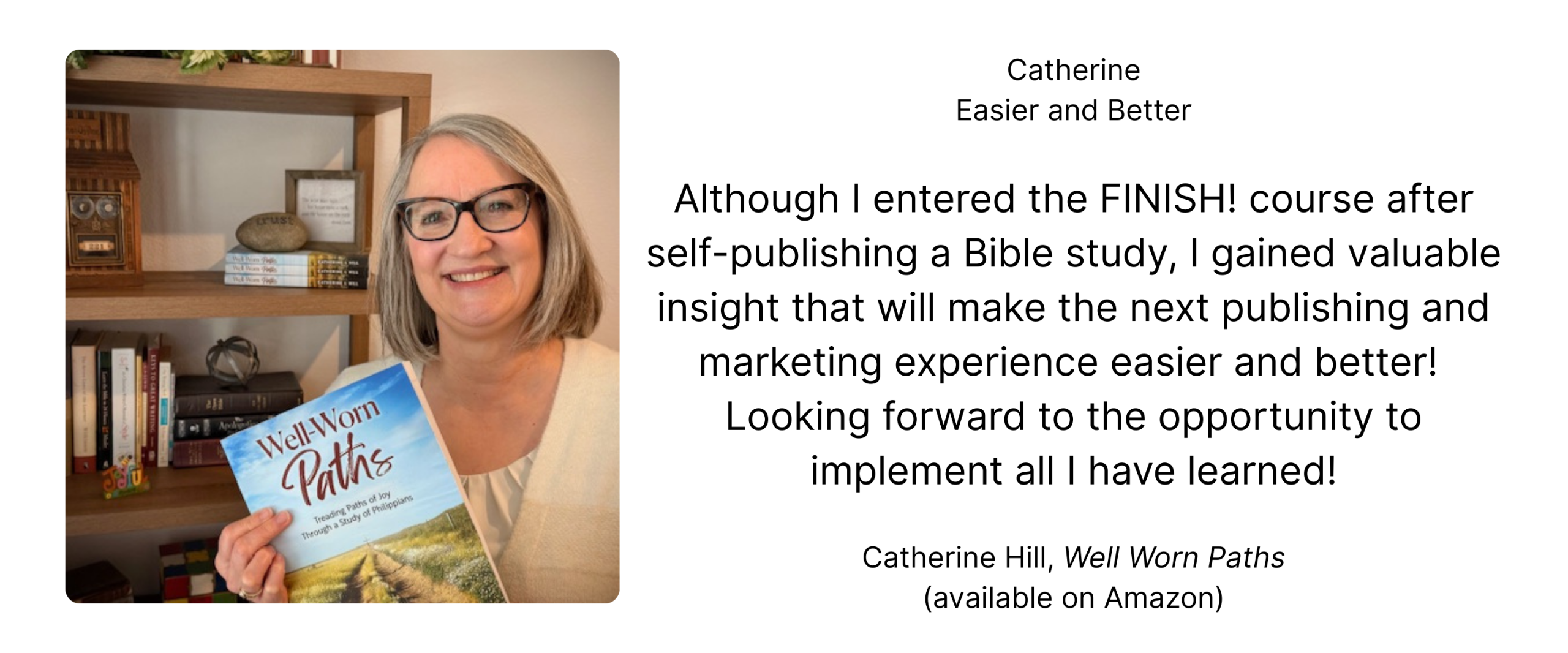 After retiring from a pastoral position in a church, I started writing and self-publishing Bible Studies. It was a journey of learning from others through a diverse range of experiences, including YouTube videos, coaching courses, writing academies, and, of course, my own trial-and-error. Now I use what I've learned to help women, just like you, find their way through the self-publishing journey.Â