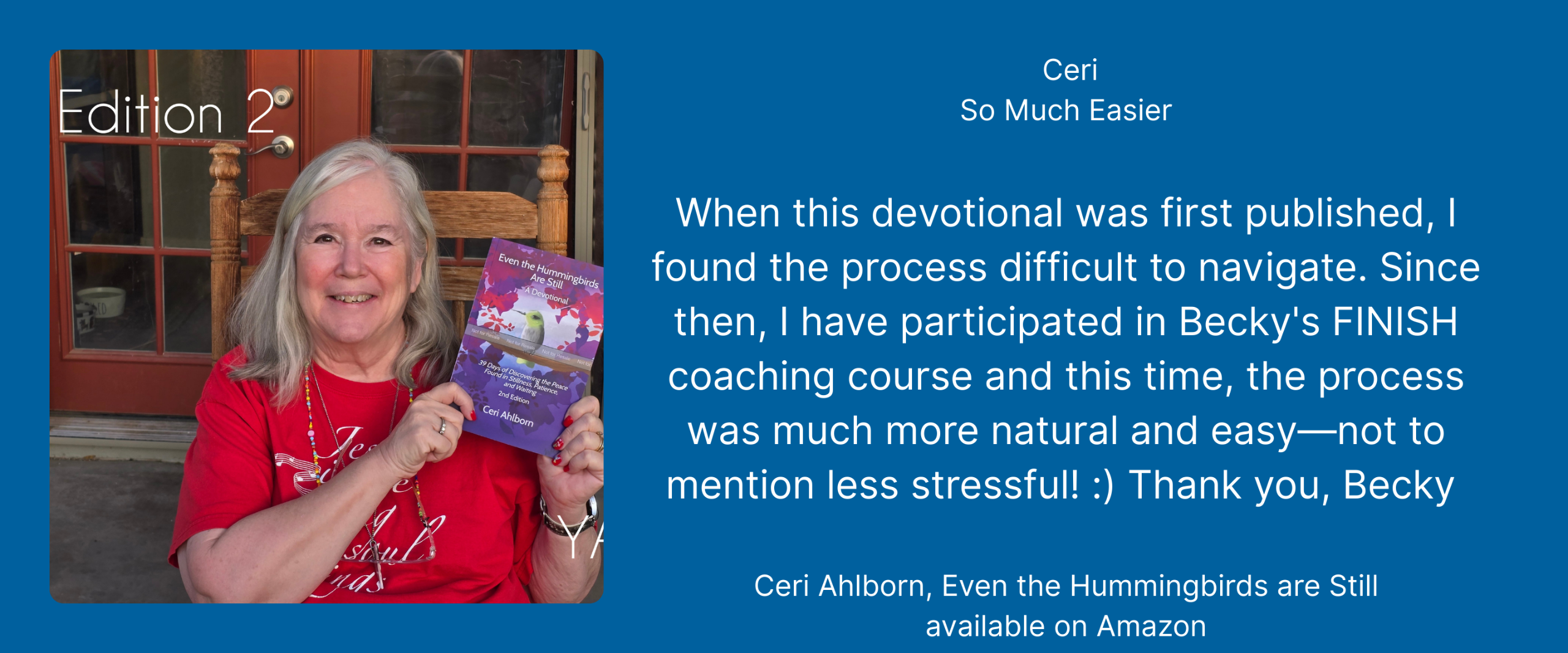 My passion is to see you take your next step and finish the book God is calling you to write.Â